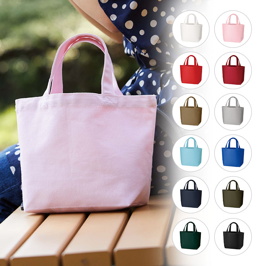 カラーが選べる!12色展開が嬉しい厚みのあるコットン生地のトートです。お弁当などランチタイムでの持ち歩きに便利なサイズで、ちょっとしたお出かけバッグとしてもおすすめです。名入れ範囲も広く、会社名やブランドロゴを印刷するだけで簡単に人気のノベルティが出来上がります。販促品やノベルティはもちろん、ファングッズや物販品としても人気の高いアイテムです。※エコマーク付