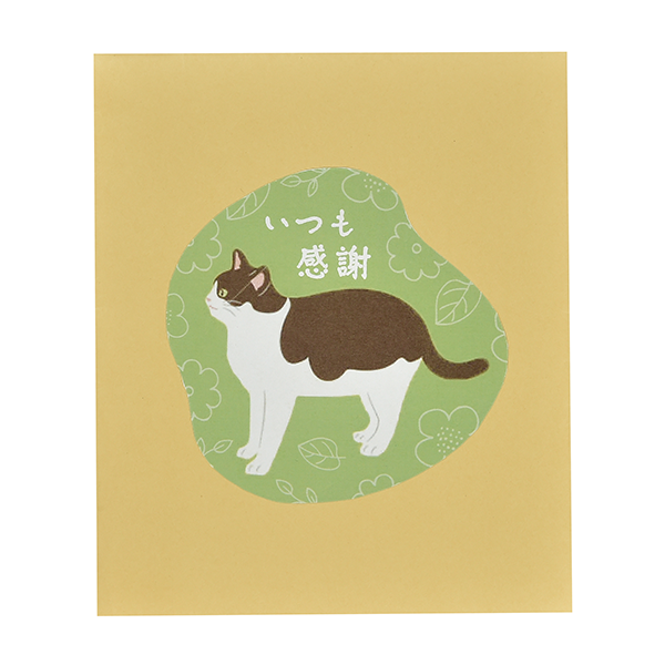 リラックスしたにゃんこが目印。150個以上50個単位でお申込みいただけます。
