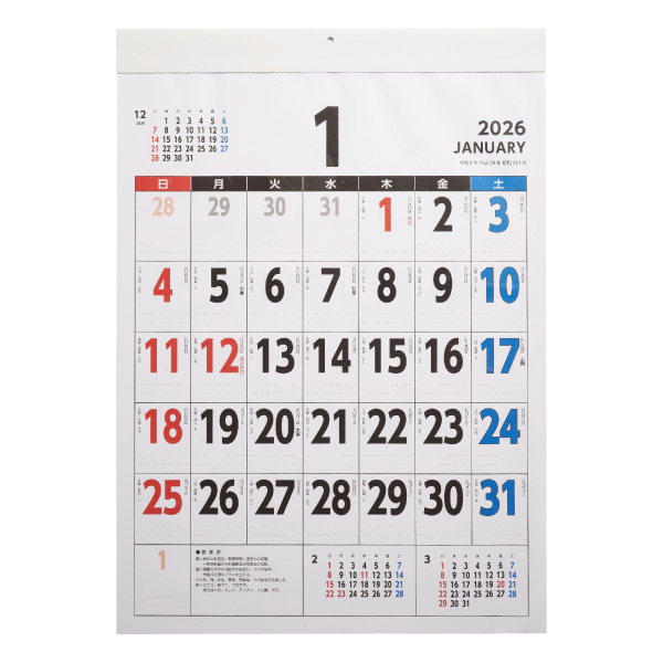 ユニバーサルデザインとユニバーサルカラーを使用し、「見やすさ」にこだわったA2サイズのカレンダーです。