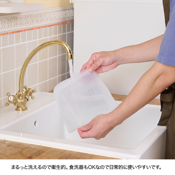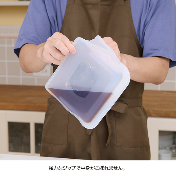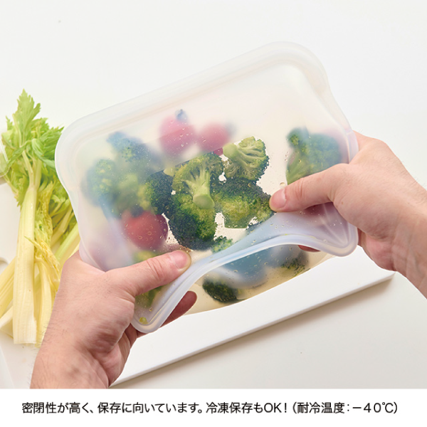 食品を鮮度のある状態で保存するだけでなく、調理や加熱にも使用できるキッチンツールです。 冷蔵庫や冷凍庫での使用はもちろん、電子レンジやオーブンでも使用できるほど耐熱温度が高い優れもの。優れた密封性をもち、食材の鮮度や栄養を閉じ込めます。自立するのも嬉しいポイントです。