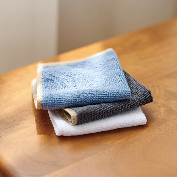 高い吸水性と集塵力で、乾拭きから水拭きまで対応できる使い勝手のいいクロスセットです。 色違いの3枚セットなので、用途に合わせて使い分けることもできます。
