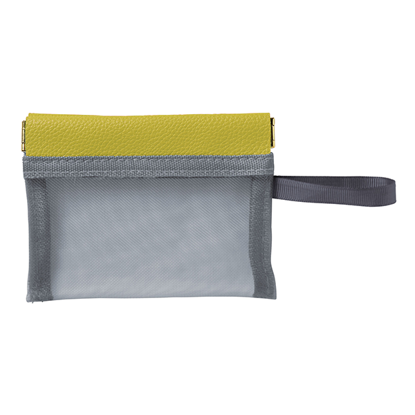 中身が見える便利なメッシュ素材と、ワンタッチで開閉できる便利なばね口仕様を組み合わせたポーチです。