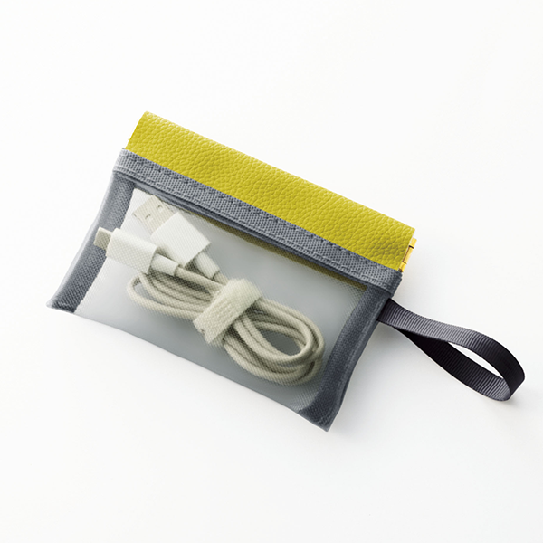 ファスナーを閉めていても中身がすぐに確認できるので、コスメ・衛生用品・スマホ周辺小物などの細々したアイテムの収納に最適。軽量かつコンパクトで携帯しやすく、バッグの中でもかさばらずに整理整頓できます。