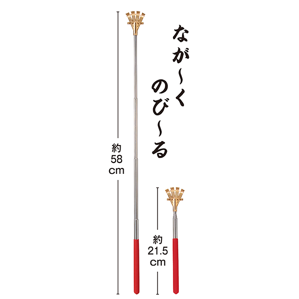 年末年始やシニア層へのベルティに最適な目を惹くアイテムです。持ち手が長くのび~る孫の手。手の届きにくいところも楽々届きやすい!