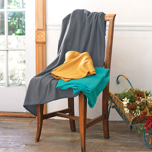 ひざ掛けに、肩掛けに、お昼寝に。ゆったり使えるラージサイズ。並べた時も単体で見てもキレイ色の3色アソートでご用意しました。