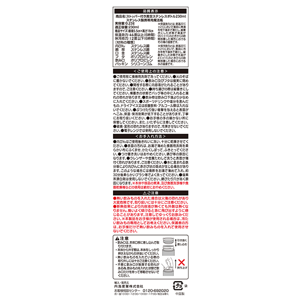| 素材 | 本体/ステンレス、中栓・フタ/ポリプロピレン、パッキン/シリコーンゴム |