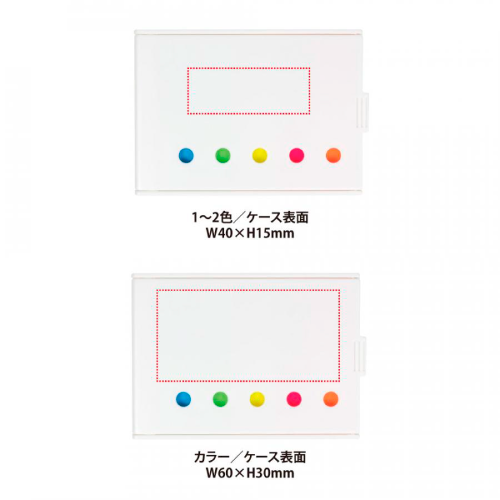 ハードケースにカラフルな5色のフィルムフセンをセット。