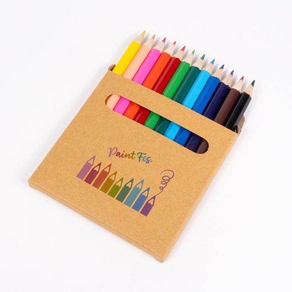 再生クラフト紙を使用した環境にやさしいパッケージの色鉛筆セット。