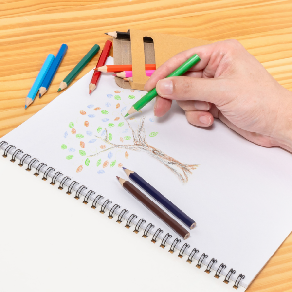 鉛筆はカラフルな12配色。エコ素材なのでSDGsアイテムとして提案できます。