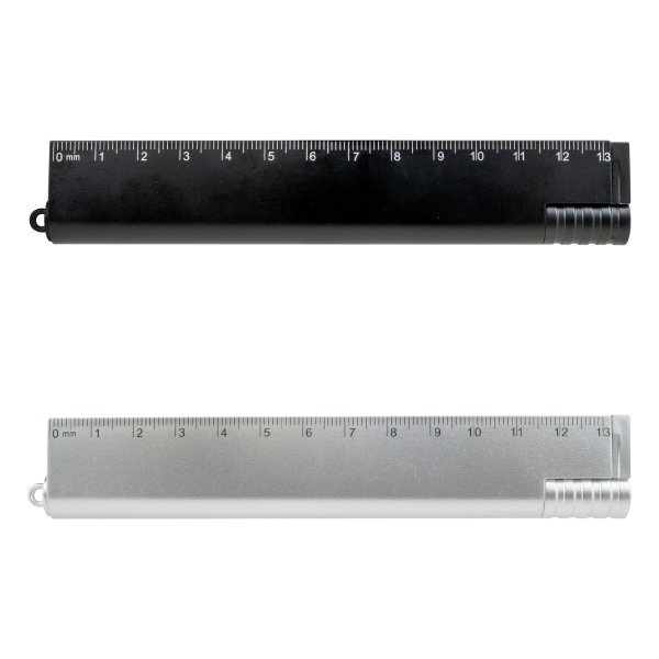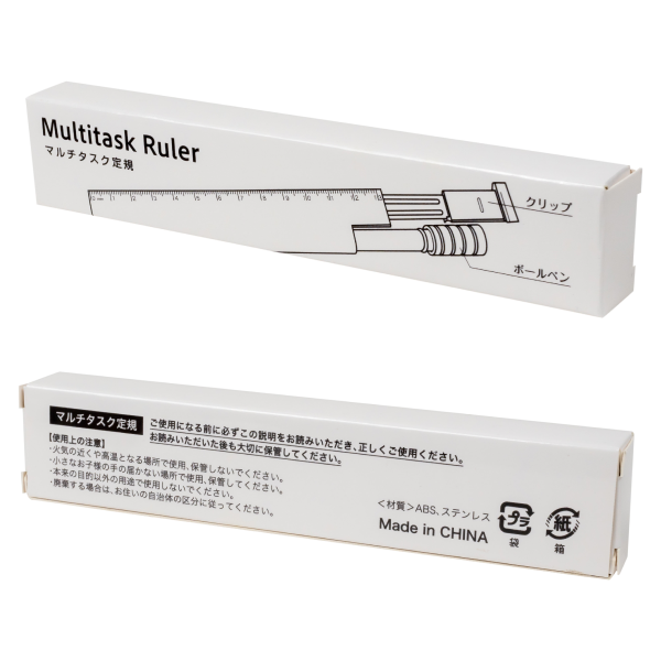 定規、ボールペン、クリップが一体となった、マルチに使える多機能ステーショナリーツール。