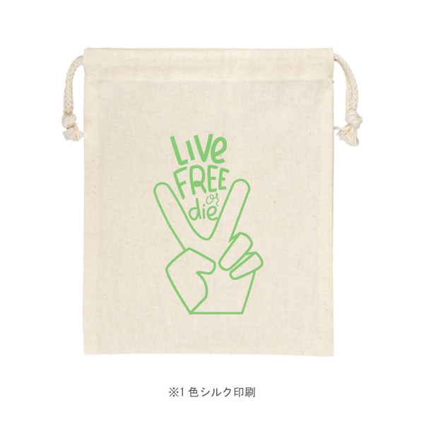 再生コットンを使用した環境にやさしい巾着袋。