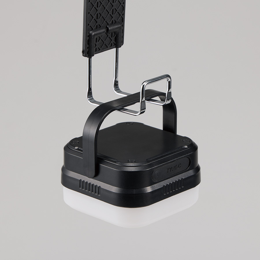 可動式ハンドル付きで便利なスクエア型ハンギングライトです。