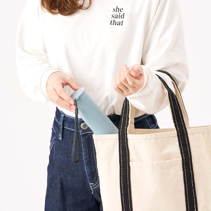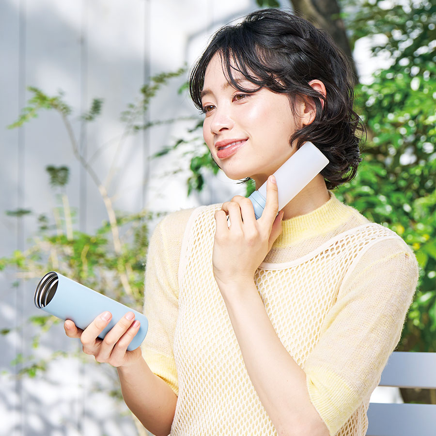 スリムな形状でかばんにもすっぽり入るので、外出時に持ち歩いていつでも首元など冷やしていただけます。