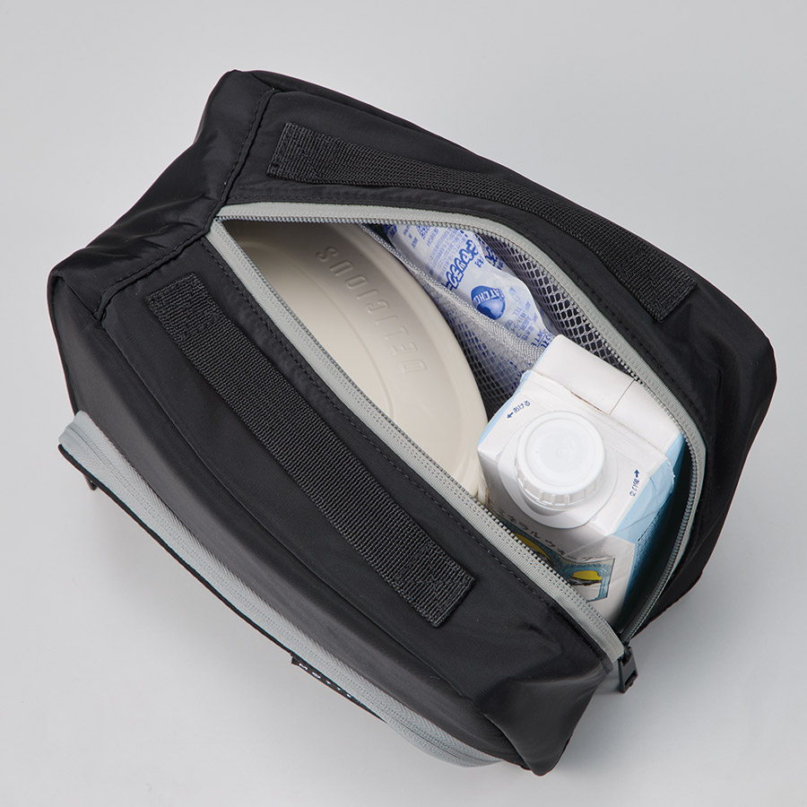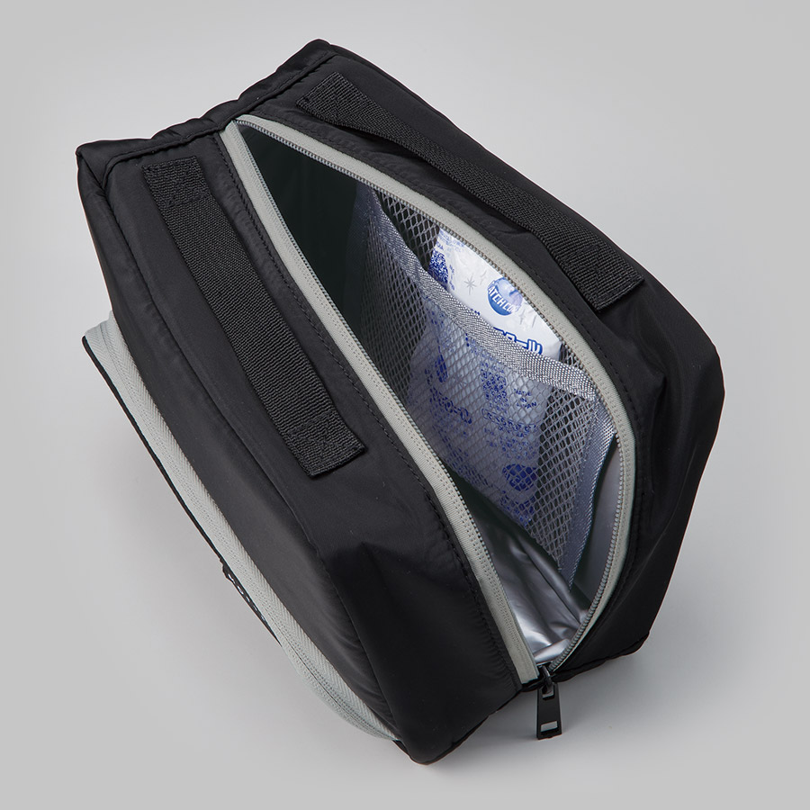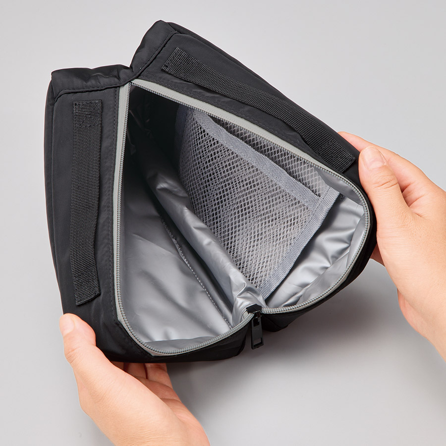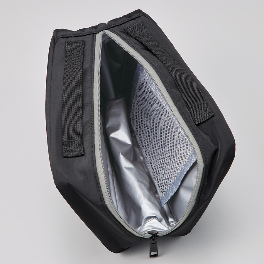 さらに内側にはメッシュポケット付きで保冷剤を入れてご使用いただくことで更に保冷効果を高めてくれます。