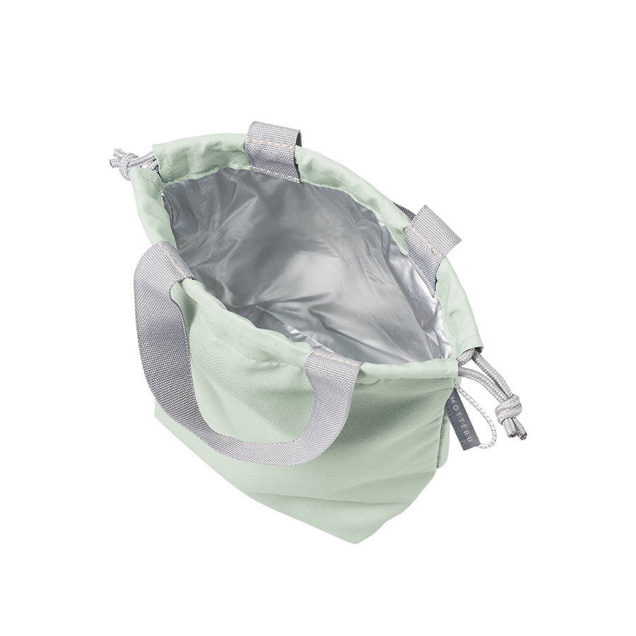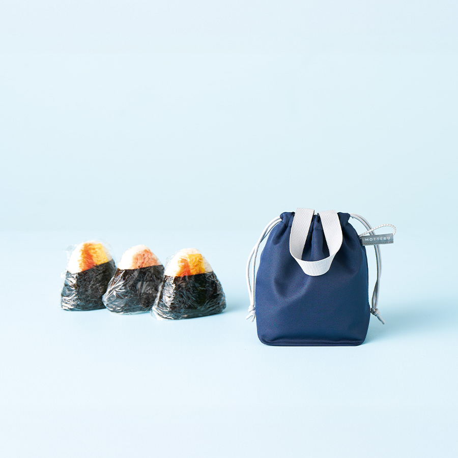 おにぎり約3つが入るサイズ感で、お弁当と別におやつを持っていくときやコンビニでのちょっとしたお買い物、お散歩ポーチとしてご活用いただけるちょうどよい大きさとデザインです。