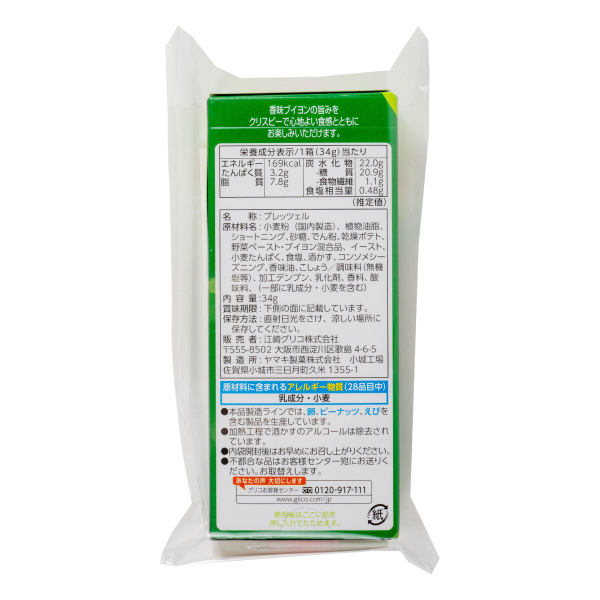 | 容量 | 旨サラダ味/34g、トマト味/29g、バター味・焼もろこし味/22.5g |