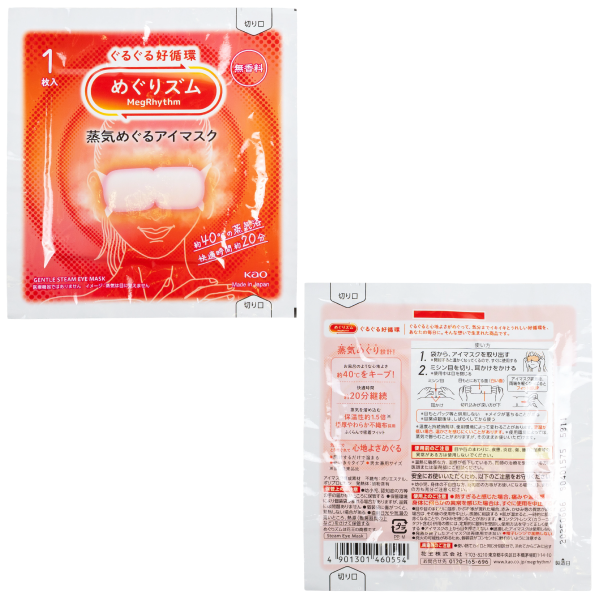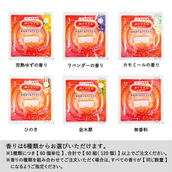 目元をやさしく包む心地よい蒸気で緊張や疲れを和らげる「めぐりズム」のホットアイマスクに、自由にデザインできるオリジナルチラシをセット。