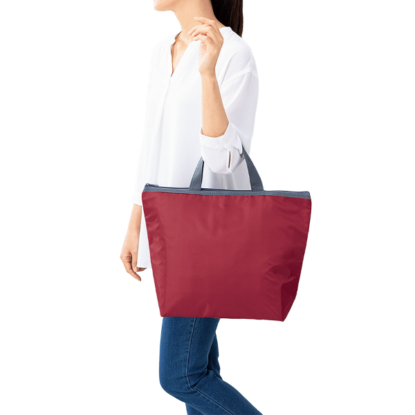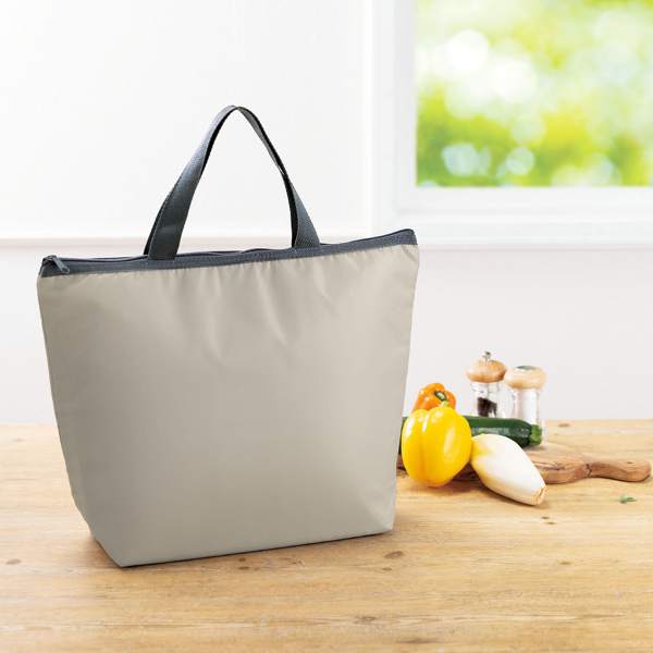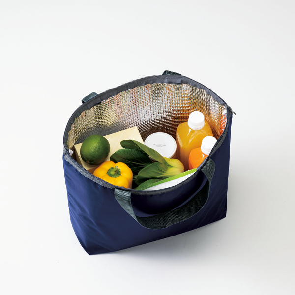 「たっぷり入ってスマート」を体現! 2リットルペットボトルが縦に3本入る容量を確保しつつ、ファスナー仕様で中身をしっかり守る使い勝手の良さが魅力の保冷・保温バッグです。 内部にはアルミ蒸着フィルムを張り、保冷・保温効果を持たせているため、ランチや生鮮食品の持ち運びにも安心。ポリエステル素材の本体は軽量で扱いやすく日常使いされるノベルティとして高い広告効果を発揮します。スーパーや飲食チェーン、イベントの記念品などにぜひご活用ください。