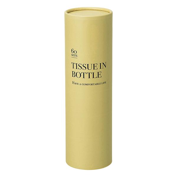 インテリアにもなじむデザイン! おしゃれでスマートなボトルティッシュです。 ぱっと見ではティッシュと分からないビジュアルが魅力。なくなっても市販のボックスティッシュの中身を詰め替えることで再利用できるため、おしゃれアイテムとして生活に馴染みつつ、ずっと使ってもらうことができます。