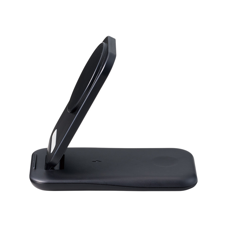 スマートフォン、ワイヤレスイヤホン、AppleWatchが3台同時に充電可能なワイヤレス充電器です。