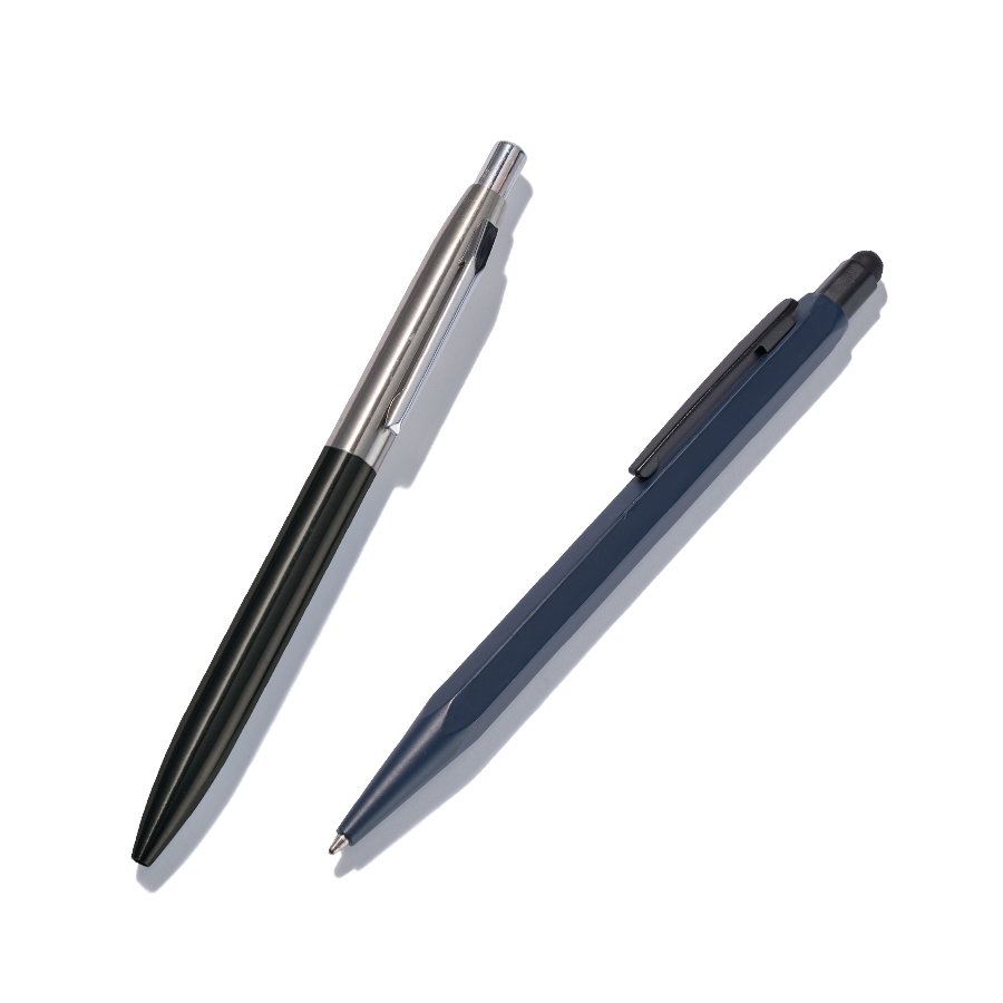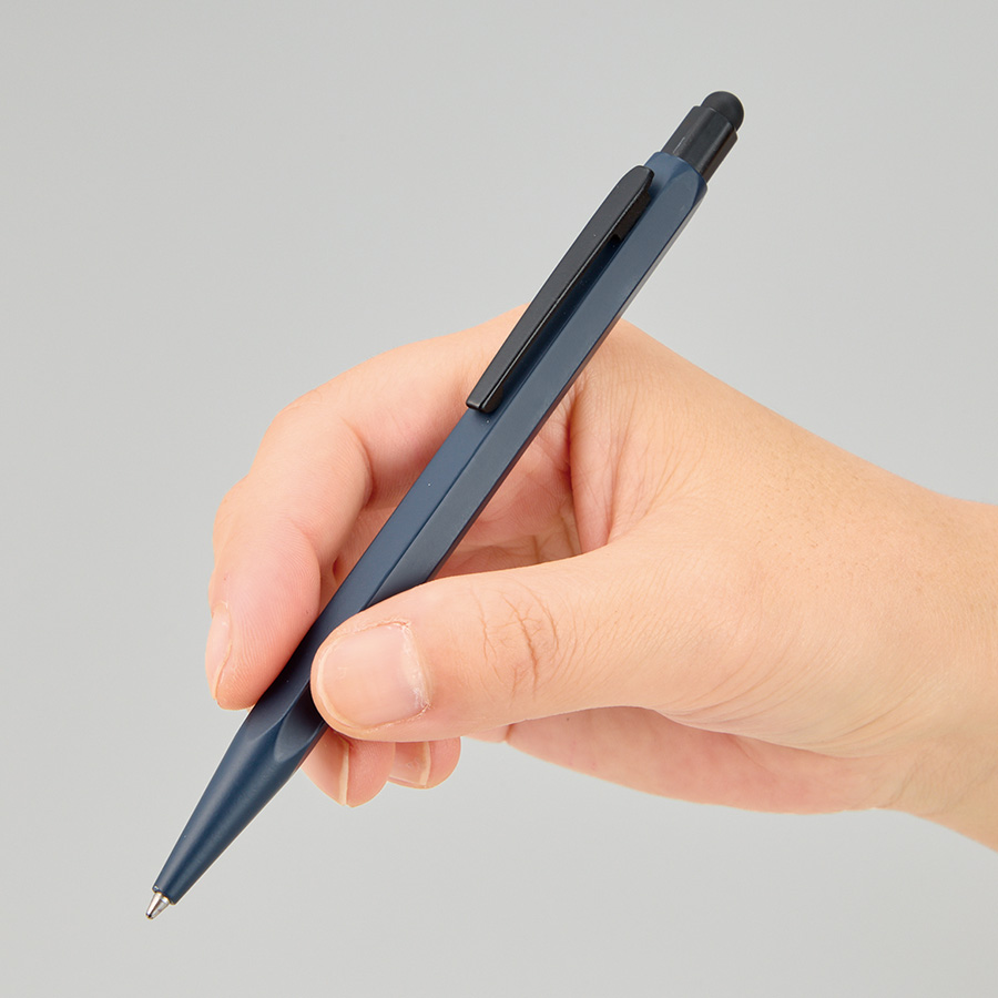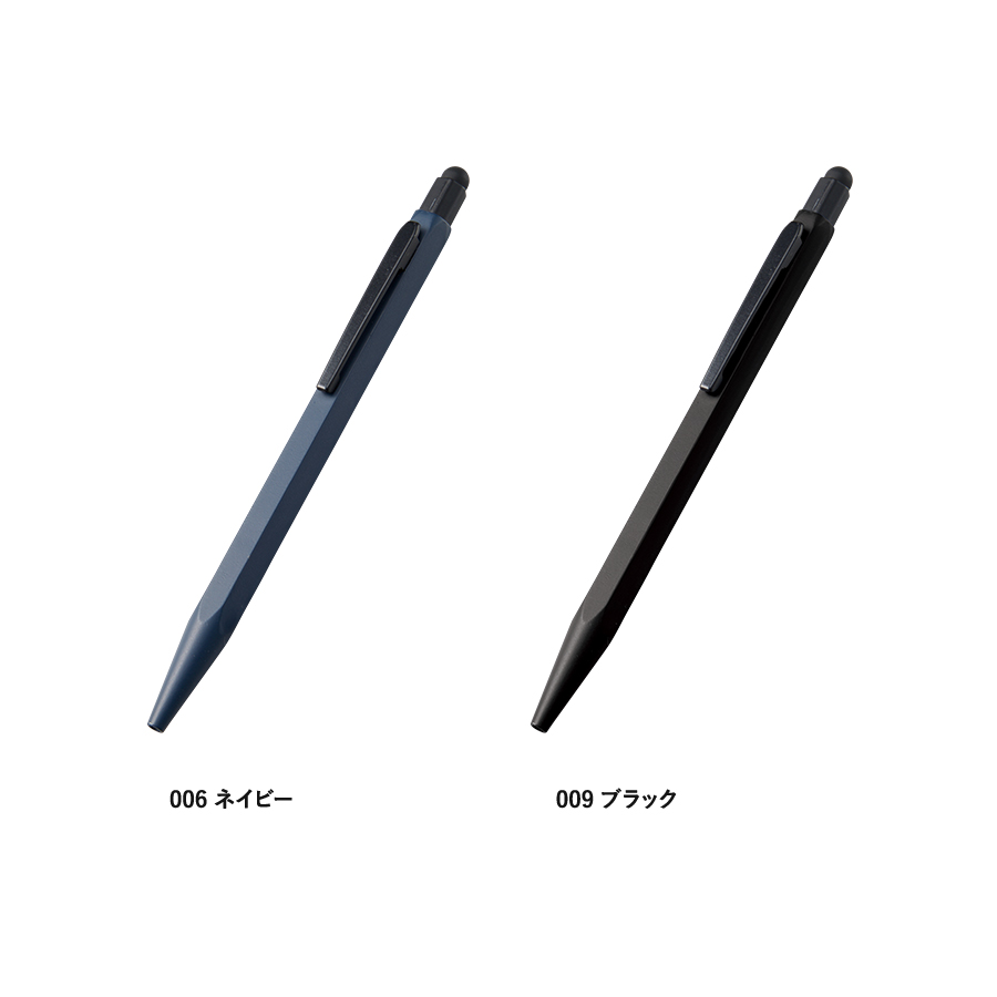 丸軸のペンとは異なり、六角形は机上で転がりにくくさらにタッチペン付きでビジネスシーンや学校、現場作業などでも活躍します。