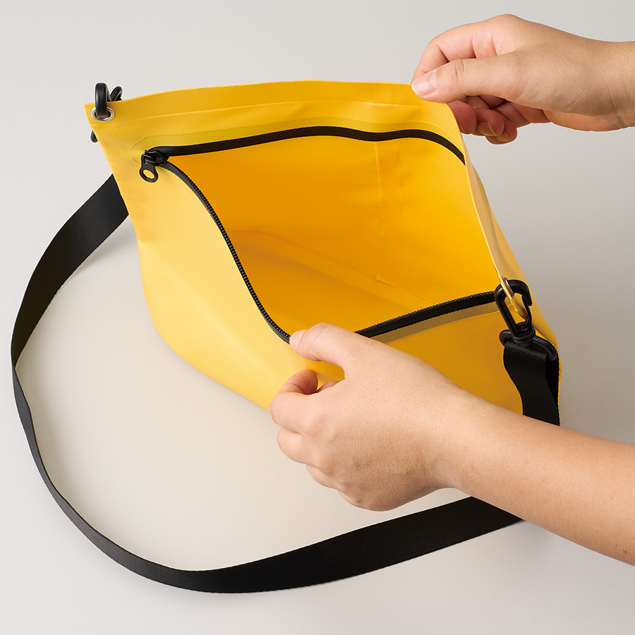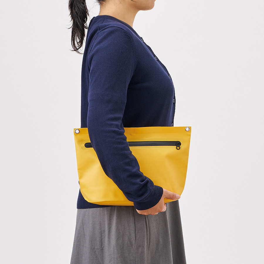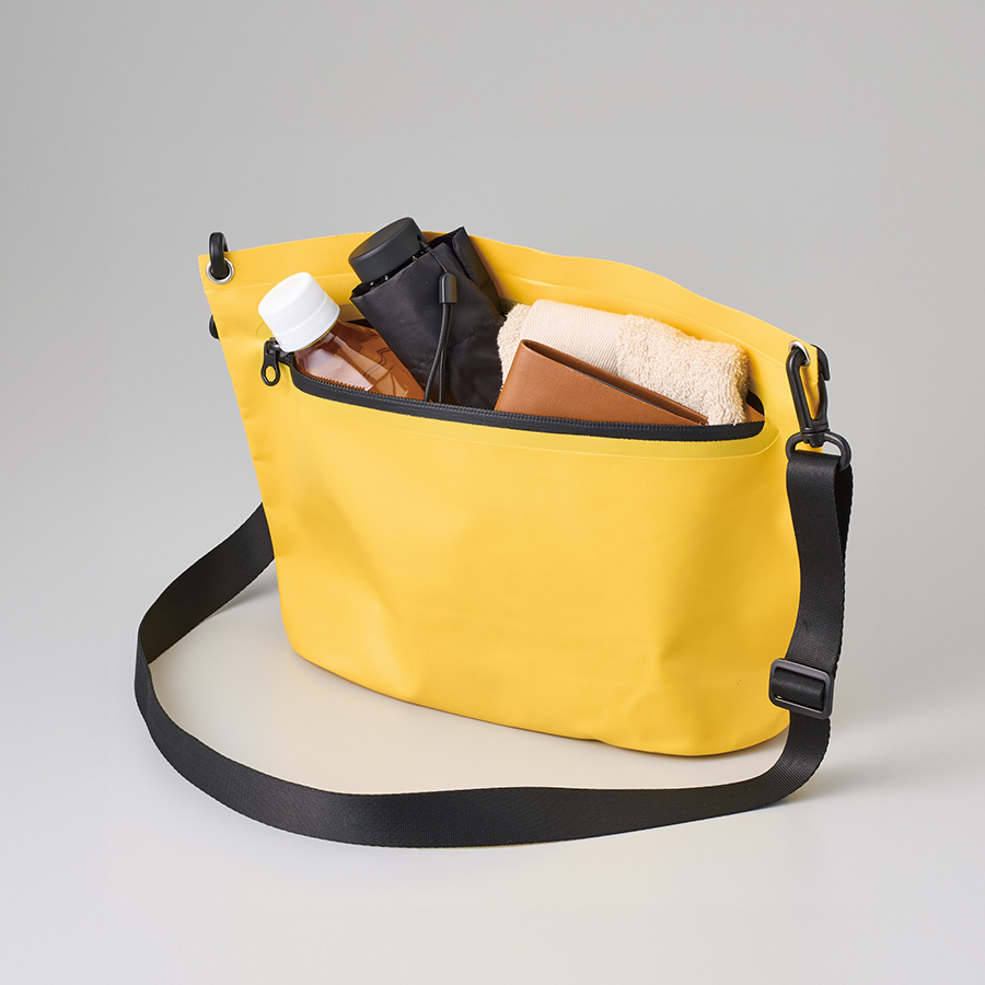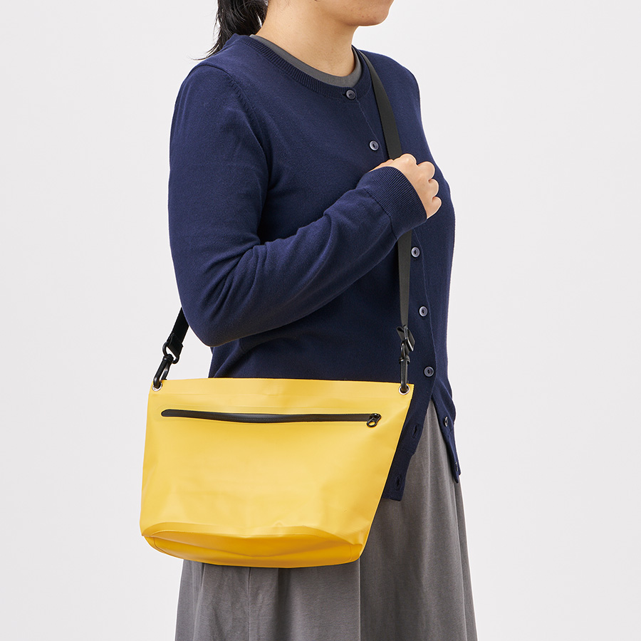 水はけがよく汚れが付きにくいターポリン素材のショルダーバッグです。
