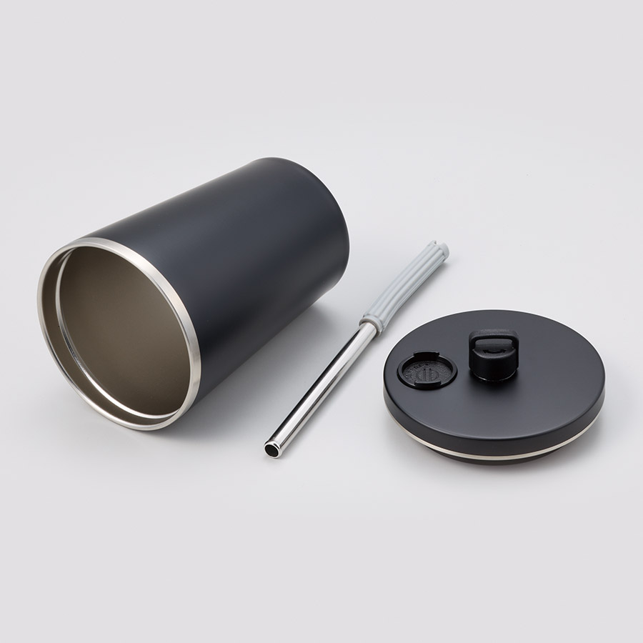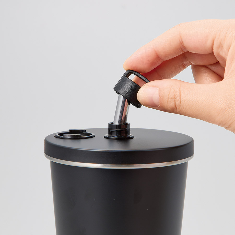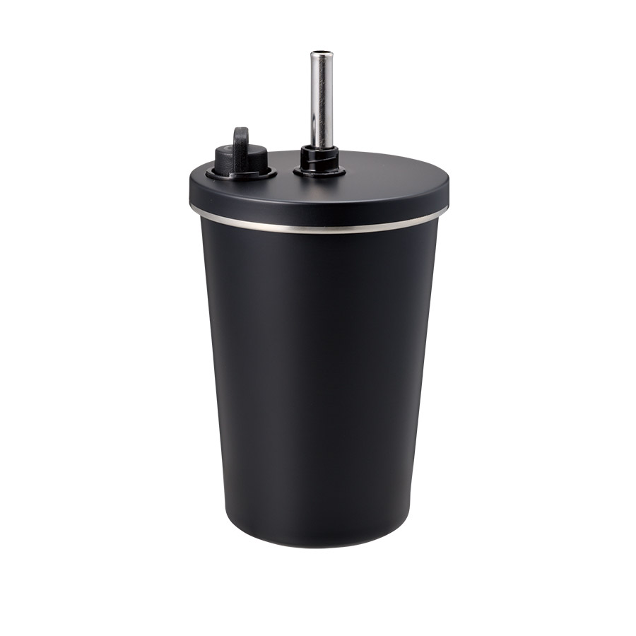 スタイリッシュなデザインが特徴のストロー付きサーモタンブラーです。