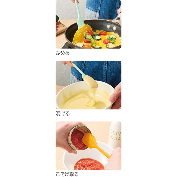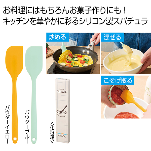 明るいカラーのクッキングツールでキッチンをパッと華やかに!お菓子作りにも使える便利なスパチュラです。 オムレツなどの料理や、レトルト・缶詰・瓶の中身をきれいに使い切りたい時にもとっても便利。扱いやすいちょっと小さめサイズです。まるで海外のキッチンブランドのようなスタイリッシュなパッケージ入り。