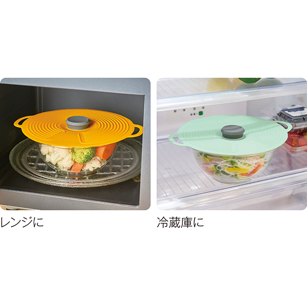 明るいカラーのクッキングツールでキッチンをパッと華やかに!レンジ調理や保存に便利なシリコンリッドです。 レンジ調理や温め直しの時にラップ代わりに使えて便利&エコ。お皿やボウルごと冷蔵庫保存する時にも使えます。まるで海外のキッチンブランドのようなスタイリッシュなパッケージ入り。