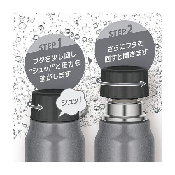 【まとめ割】炭酸飲料・スポーツ飲料OK&1Lの大容量サイズ!せん本体に圧力開放穴を設けてあるため、フタを軽く回すだけで炭酸飲料による内圧を逃がすことができます。