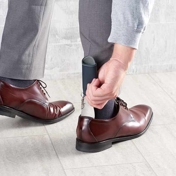 折り畳み式で携帯しやすいコンパクトな靴べら。 落ち着いた色味でスーツなどどんな服装にも合い、鞄やキーホルダーにもつけやすいナスカン付き。