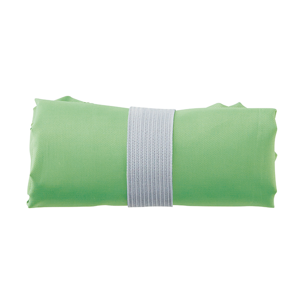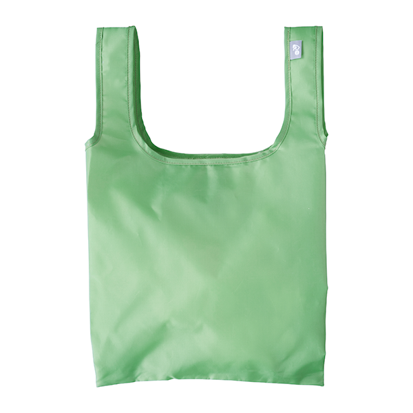 環境にやさしい再生PET生地のエコバッグ。ゴムバンド付きなので小さくたためて収納に便利。 ちょっとしたお買い物にちょうどいいサイズ感です。