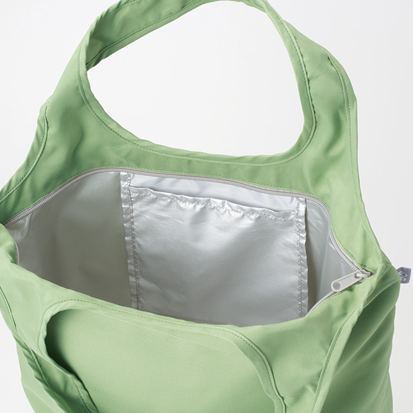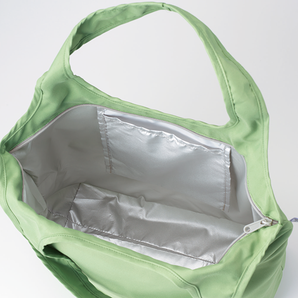 上質な再生PET生地の保冷温トートバッグで、ファスナー付でしっかり保冷温されます。 ポケットへコンパクトに収納できるのも魅力的。