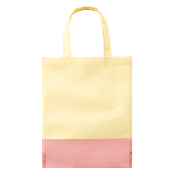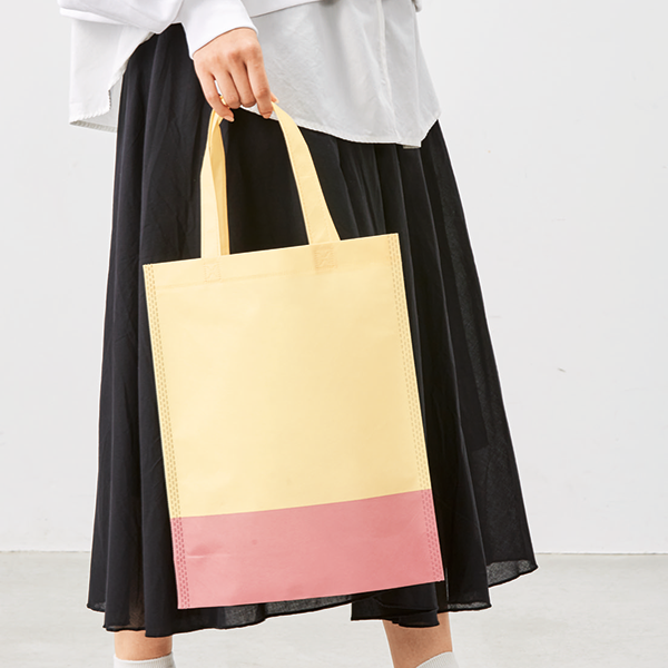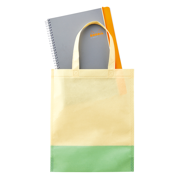 環境にやさしい再生PET生地のトートバッグ。A4サイズが収納可能で展示会での配布に便利。 底マチ有りなので見た目以上の収納力があります。