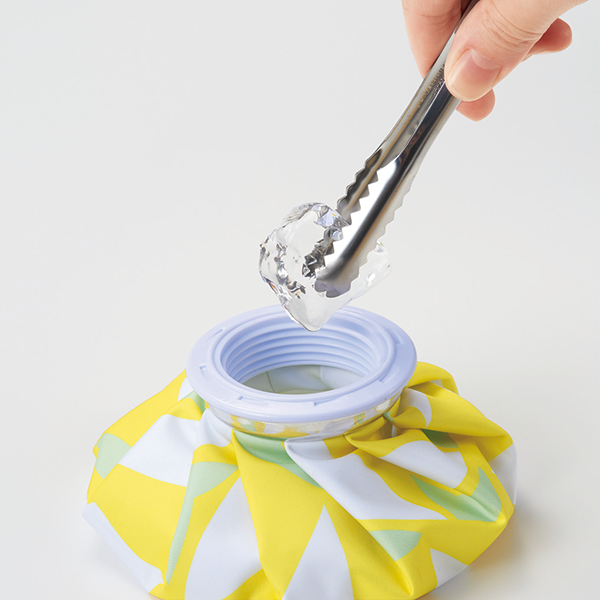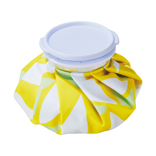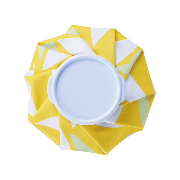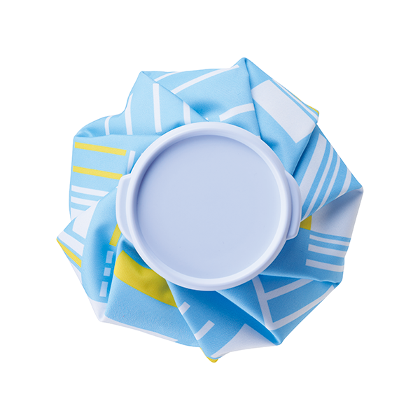 伊砂文様シリーズの新しい夏柄を使用した氷のう。 ブルーとイエローの涼しげな色合いに、容量500mlで暑さ対策に使いやすいサイズ感。
