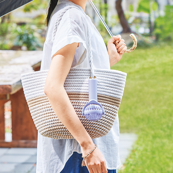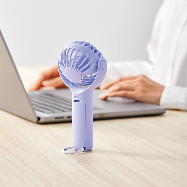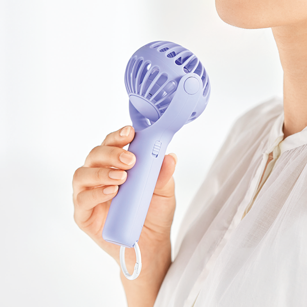 360度回転するヘッドで風向きを調整できる、携帯に便利なハンディファンです。 カラビナ付きで持ち運び時にはバッグの持ち手に下げるなどしておくことができます。底面滑り止め付き設計でデスクファンとしても使用可能。