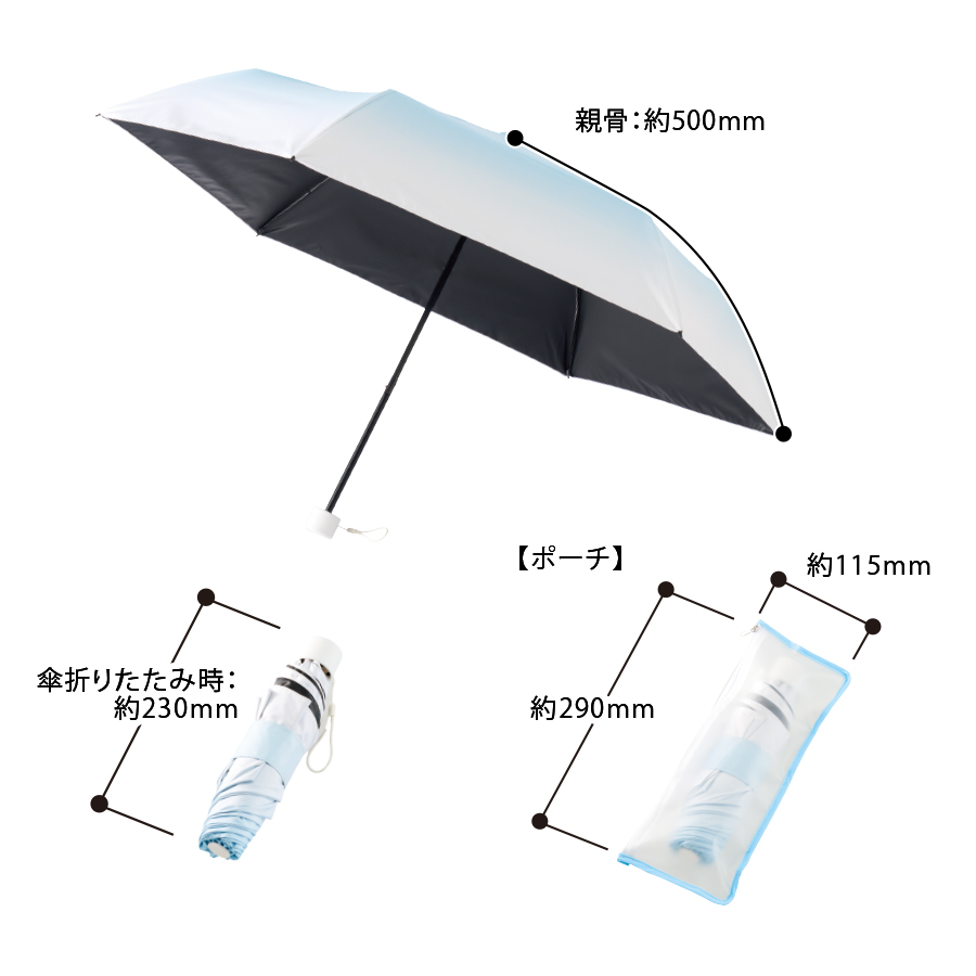 グラデーションがかわいらしい遮光折りたたみ傘です。
