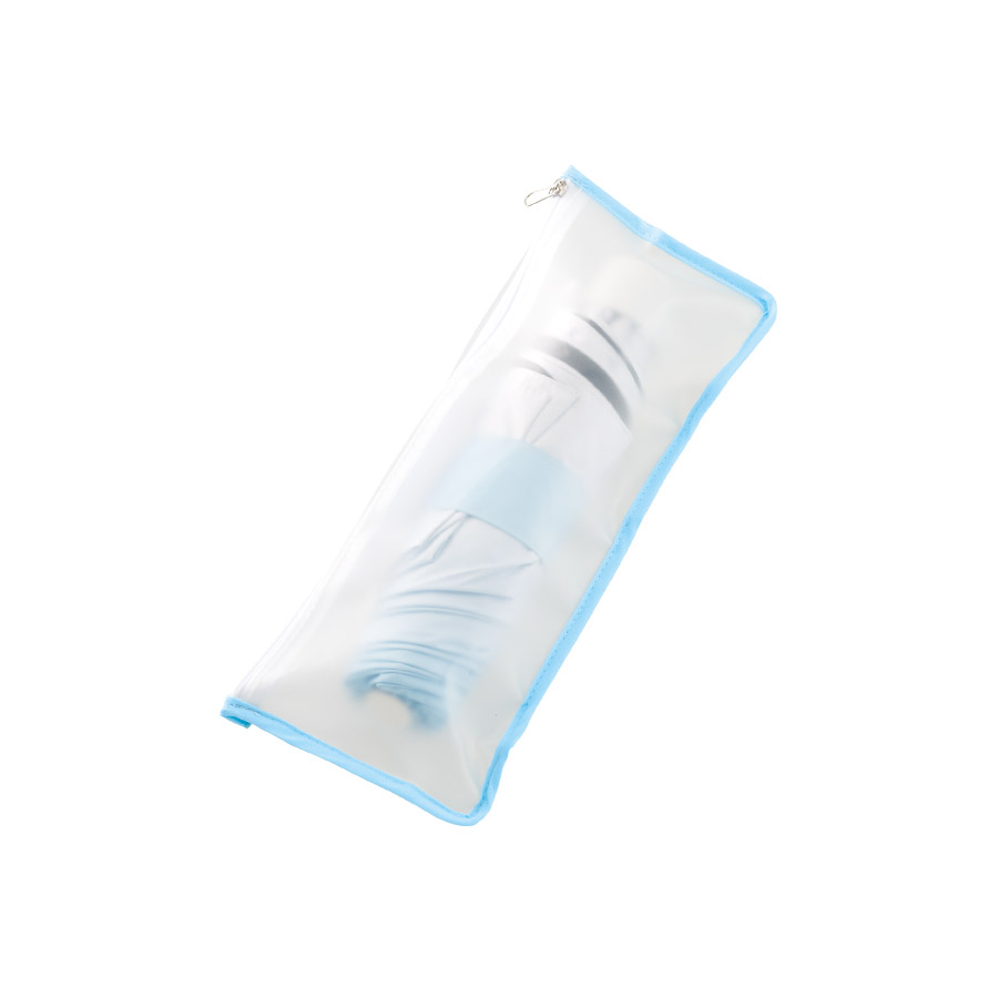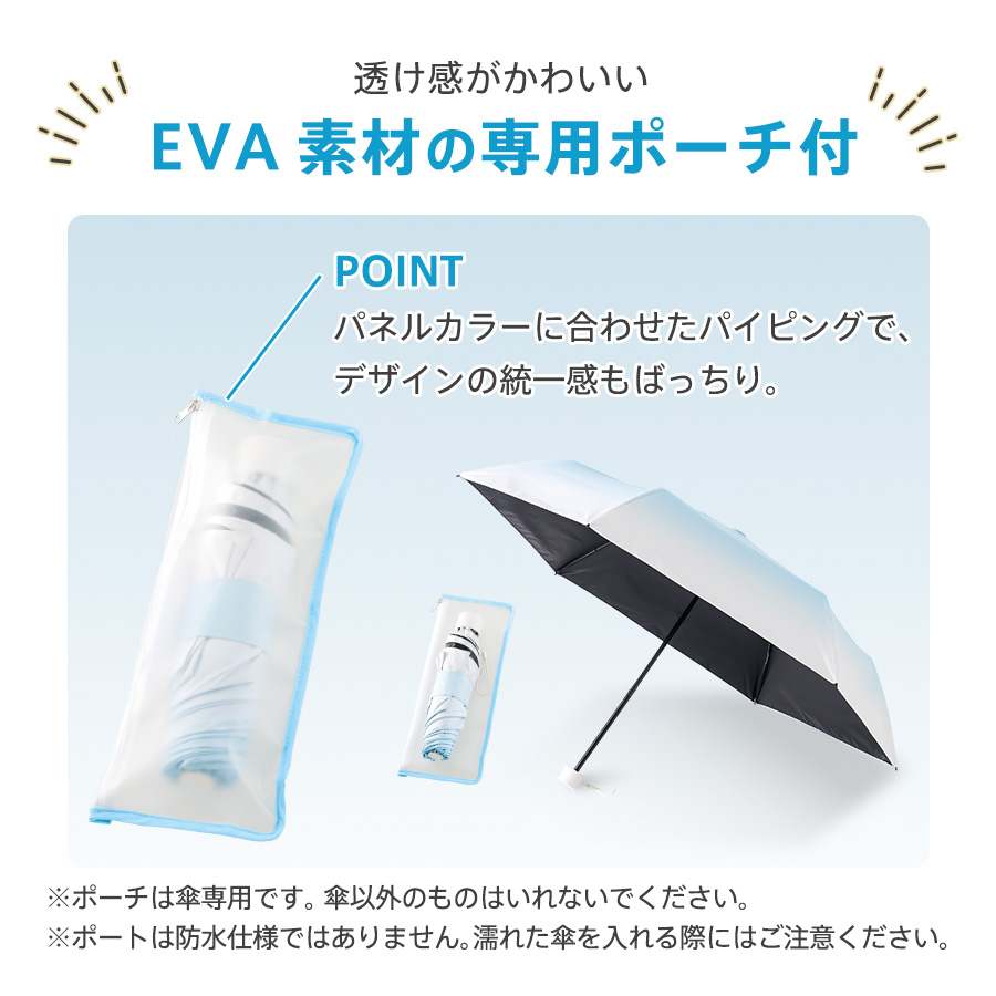 半透明のEVA傘ポーチ付きで、パネル色に合わせたパイピングになっており統一感があるデザインです。