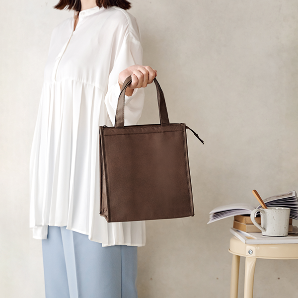 大人カラーがおしゃれなトートバッグ型不織布保冷温バッグです。 500mlのペットボトルも立てて入るサイズが嬉しい!不織布ながらも縫製仕上げでしっかり使えます。