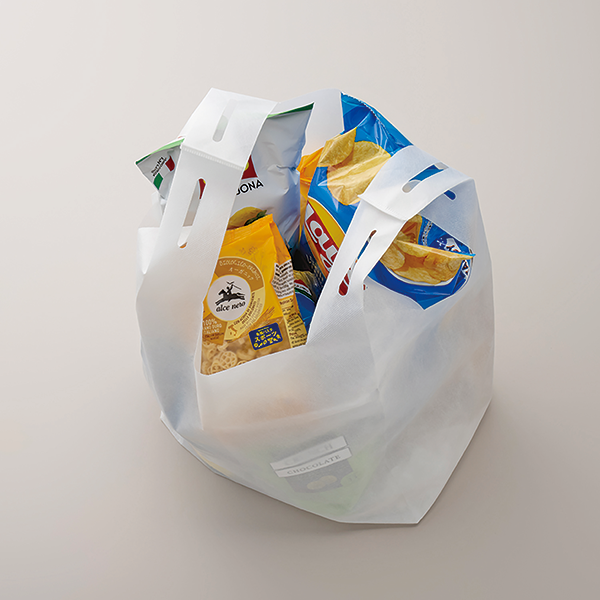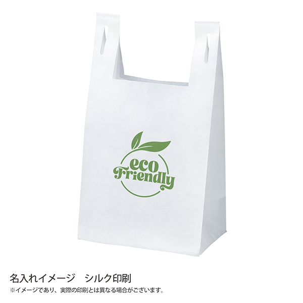画像は「不織布A4フラットトート」にシルク一色印刷をしたものです。