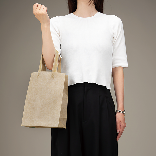 R-PET素材の生地100%で作られた環境にやさしいエコバッグです。 R-PET素材とは、使用済みペットボトルを原料とした素材のことをさします。34gと超軽量なのにマチが広いので日々お買い物で大活躍!旅行などには折りたたんでキャリーケースに忍ばせておけば、かさばるお土産などの持ち運びに重宝します。再生PETを使用していることがわかるように「PRETロゴ」を底面にプリントし、環境配慮商品であることをさりげなくお知らせしています。