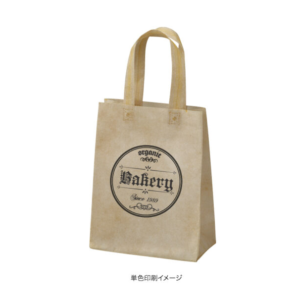 画像は「不織布A4フラットトート」にシルク一色印刷をしたものです。