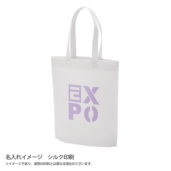 画像は「不織布A4フラットトート」にシルク一色印刷をしたものです。