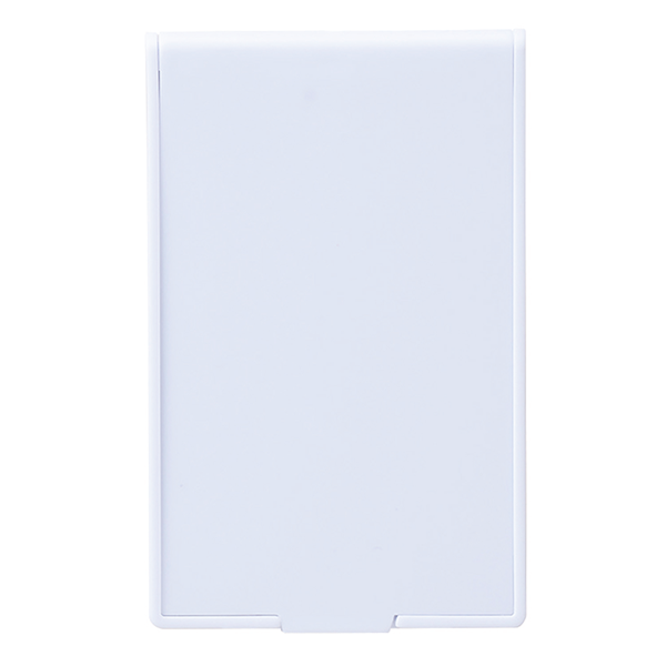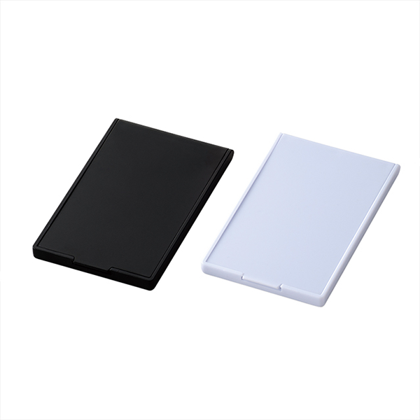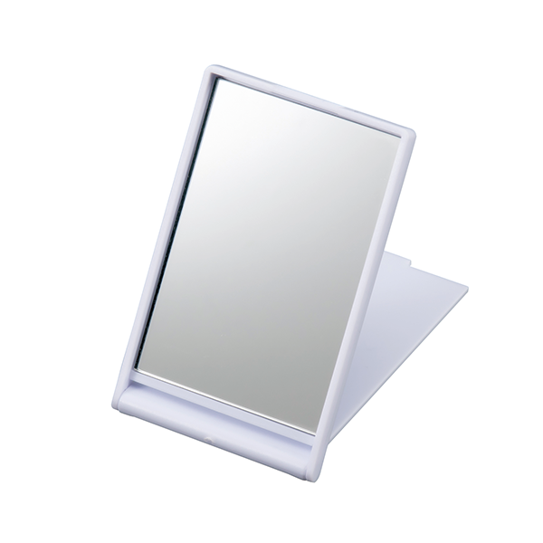 手の平サイズで携帯に便利なミラーです。 ワントーンカラーで統一された四角いフォルムは、シンプルながら飽きの来ないデザイン。名入れスペースもたっぷりあるため、PR効果も抜群!コスメのノベルティや、サロンの記念品にオススメのアイテムです。