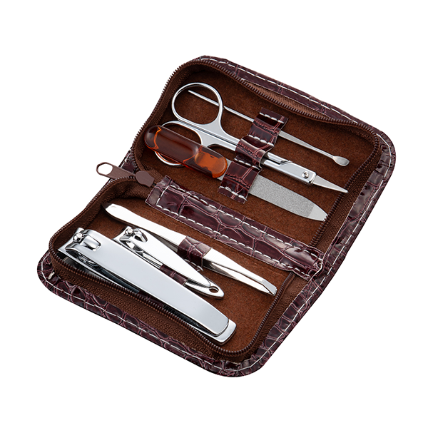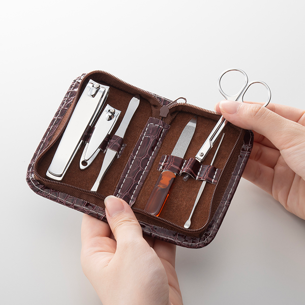 クロコダイル調のケースに6種類の便利なネイルケアセットです。 旅行時はもちろん、ビジネスシーンの身だしなみにもお使いいただけます。