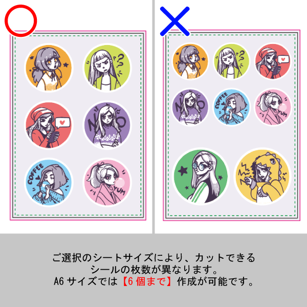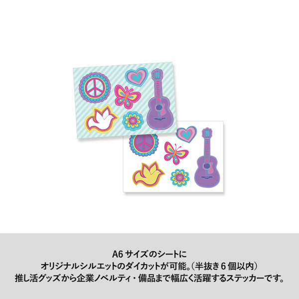 A6サイズのシートにダイカット(オリジナルシルエット)の抜きデザインが最大6個まで可能です。