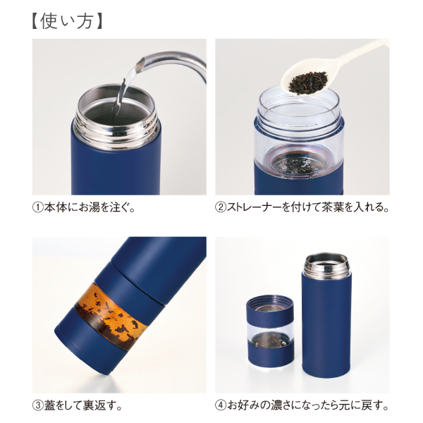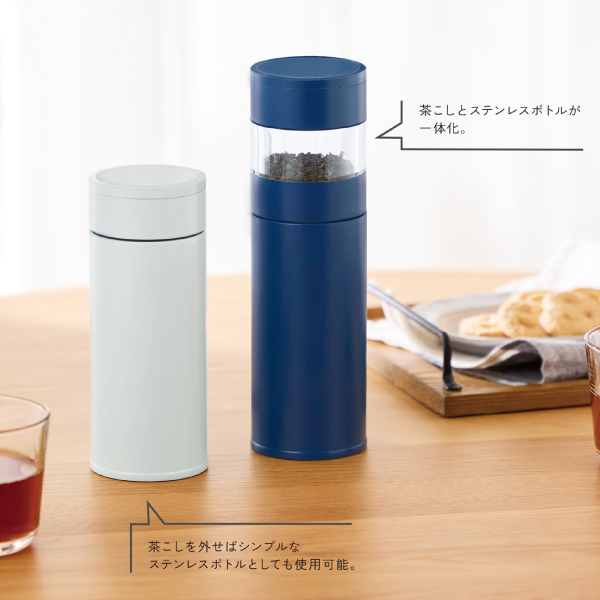 ティーポットなしでお茶や紅茶が飲める、茶こし付きのボトルです。 茶こしは取り外せるため、お茶をいれた後はそのままボトルとして使用できます。