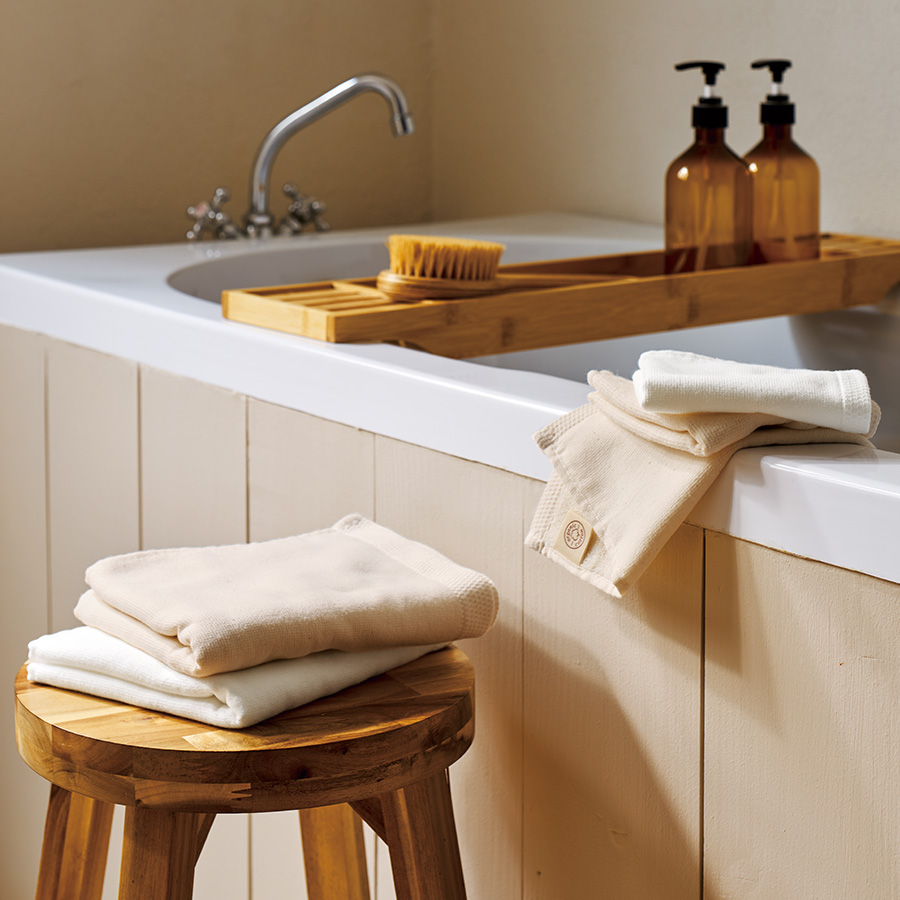 綿花そのものを感じるナチュラル、清潔感のあるホワイトの2色展開です。