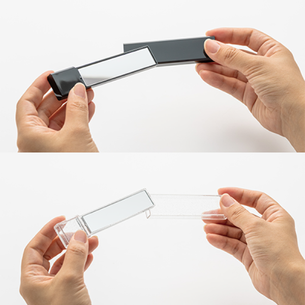細くてかさばらないコンパクトなミラーです。 ミラーの裏面には5倍の拡大鏡もついており、さっと取り出して身だしなみを整えるのに最適です。