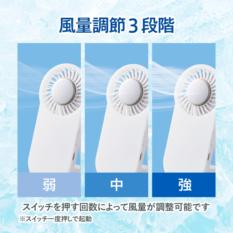 風量は弱中強の3段階で調節することができ、冷却プレートで直接首筋など血管の太い部分を冷やすこともできるため、デザイン性のみならず実用性もばっちりです。